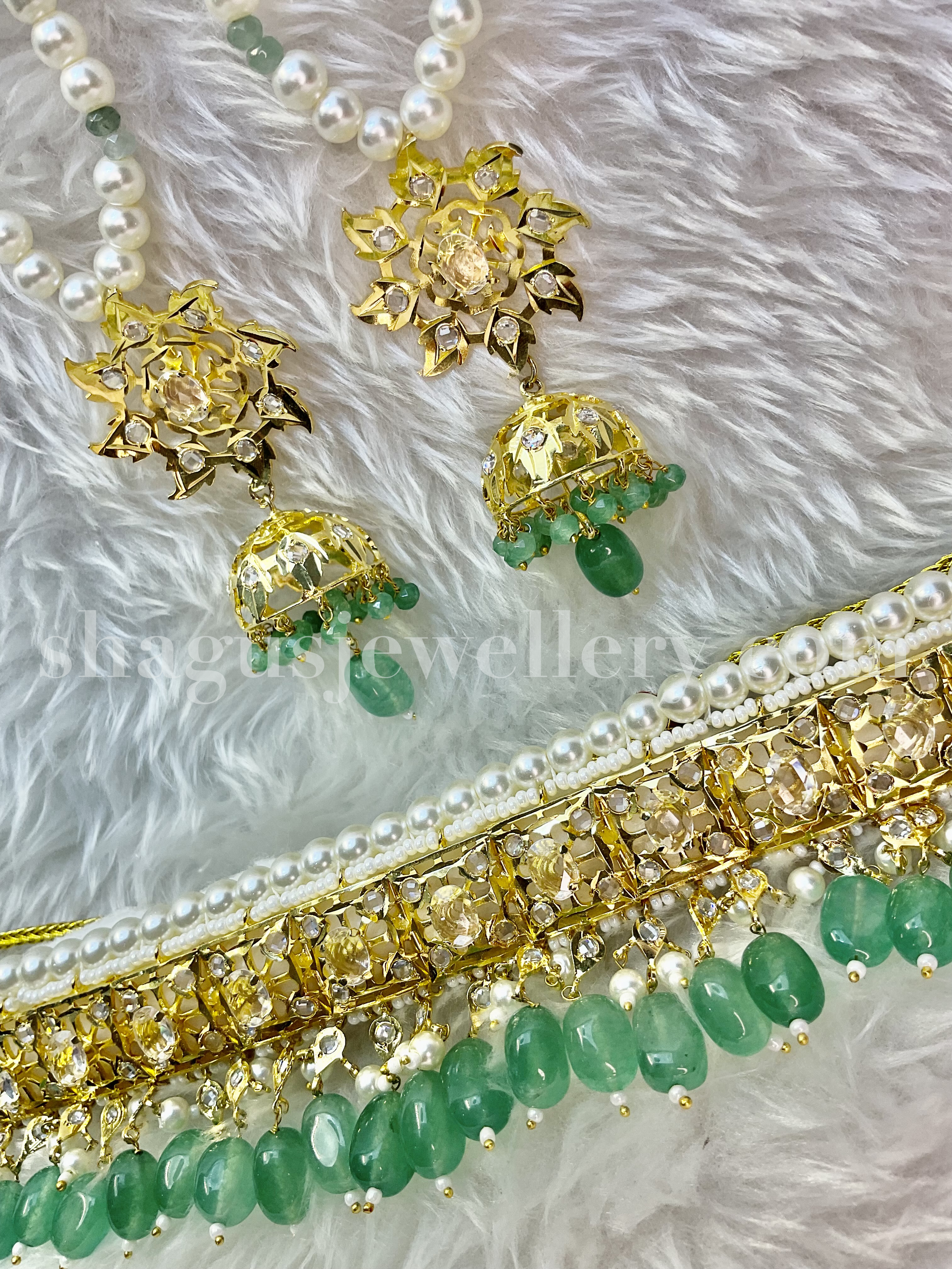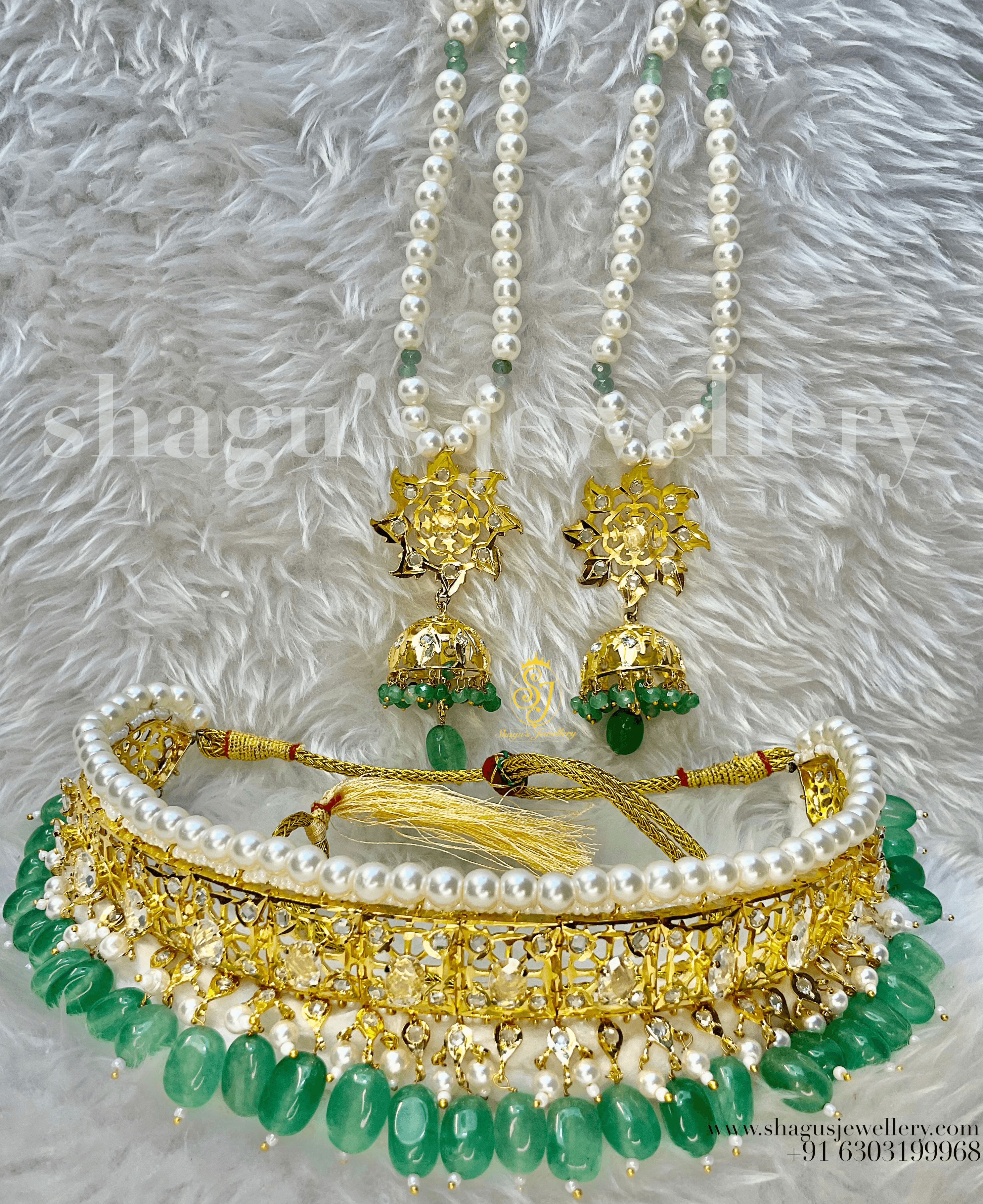 Iconic Classic Jadavi (Jadau/Choker) Set - Onyx Green [Click inside image for HD quality]