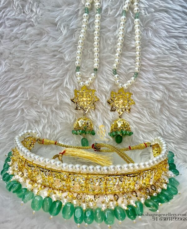 Iconic Classic Jadavi (Jadau/Choker) Set – Onyx Green [Click inside image for HD quality]