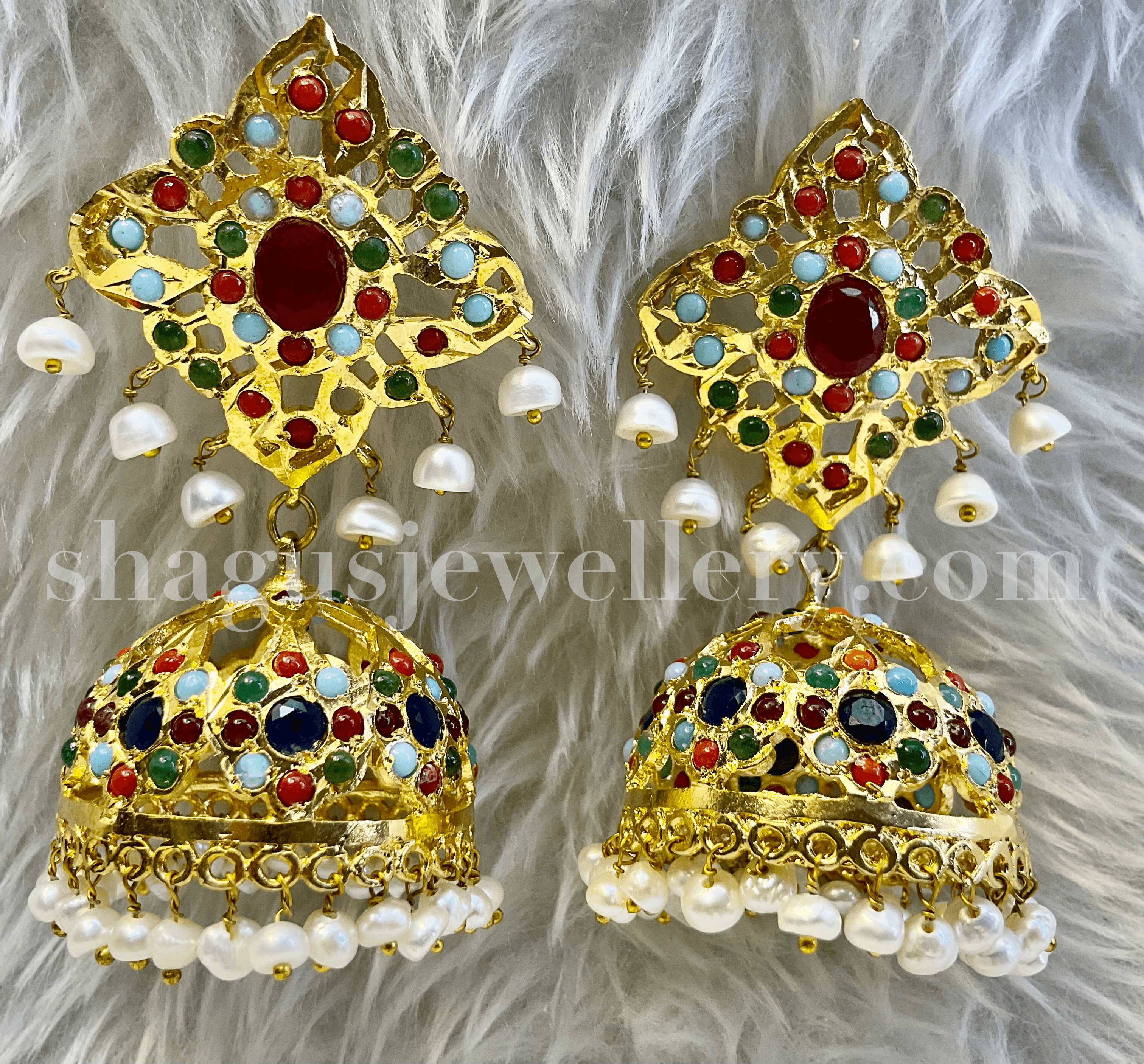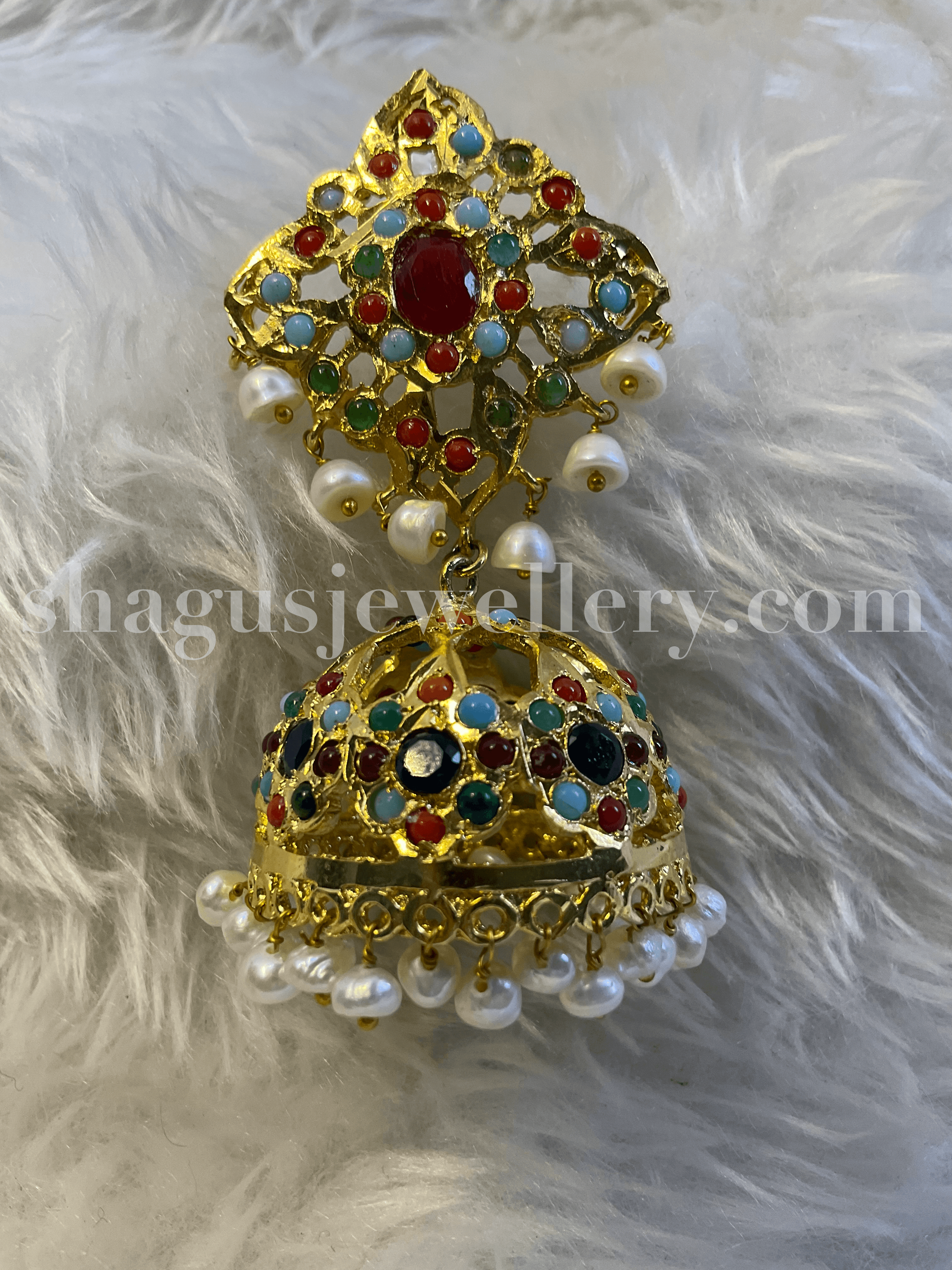 Hypnotic Real Navratan Big Jhumka [Click inside image for HD quality]