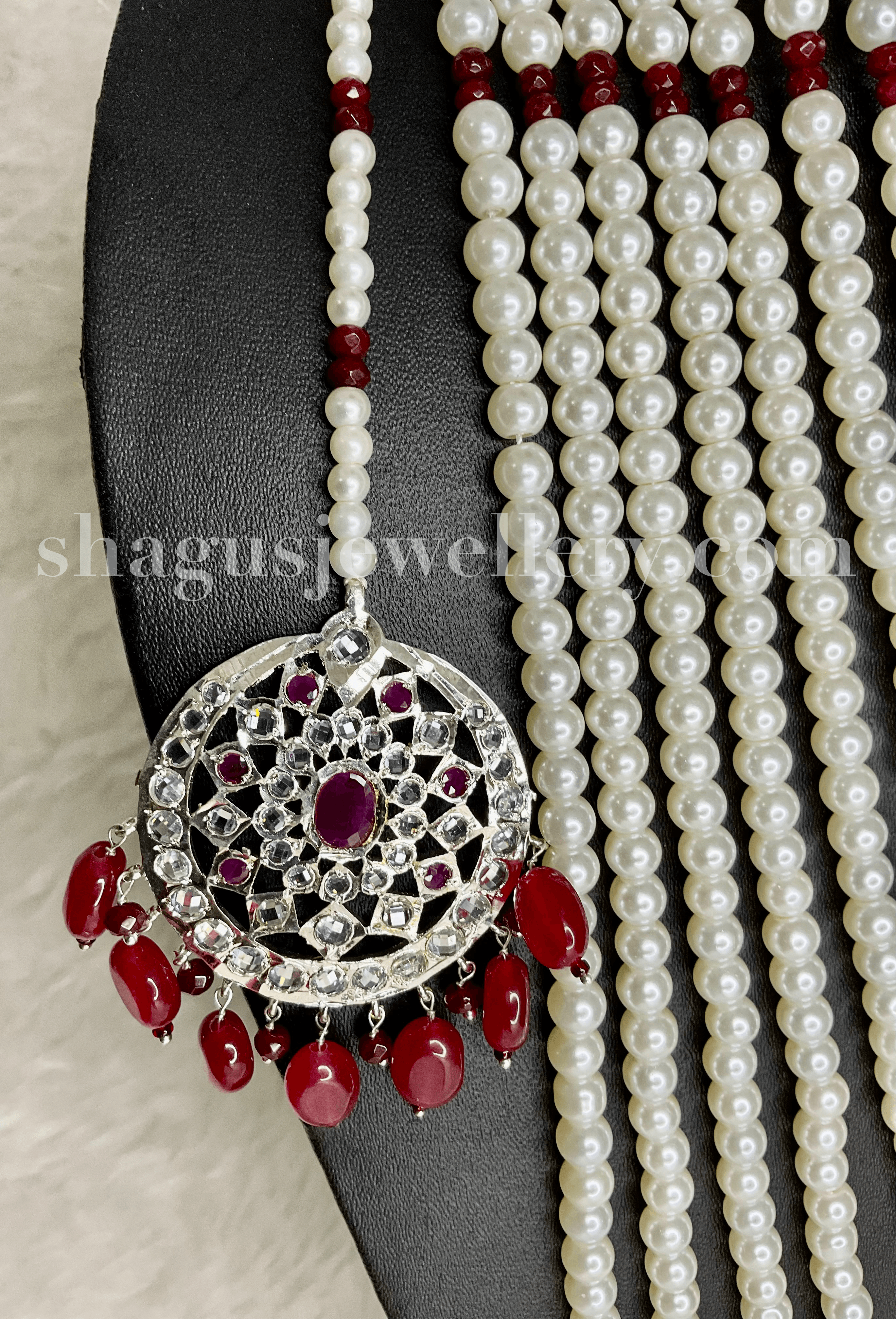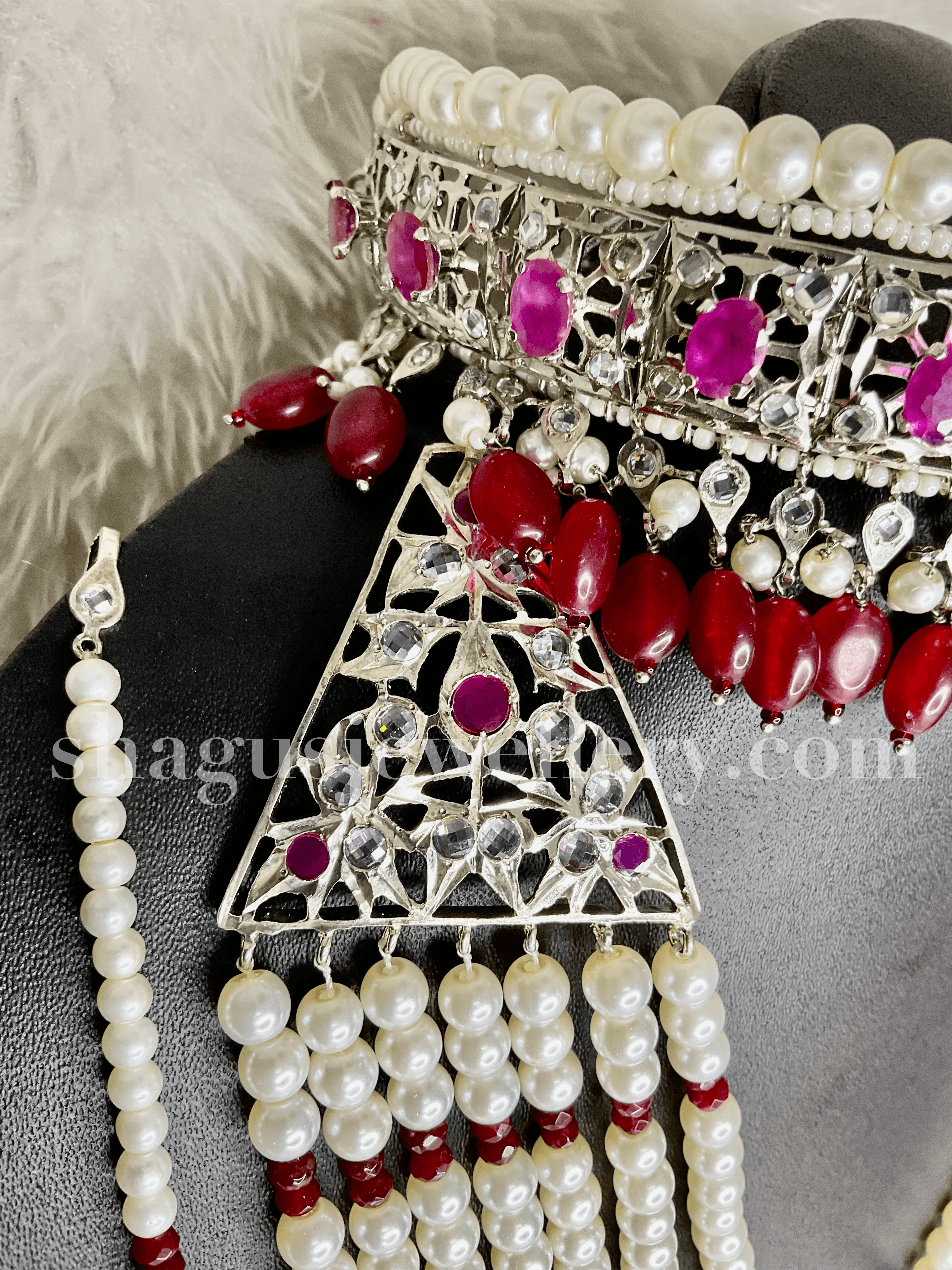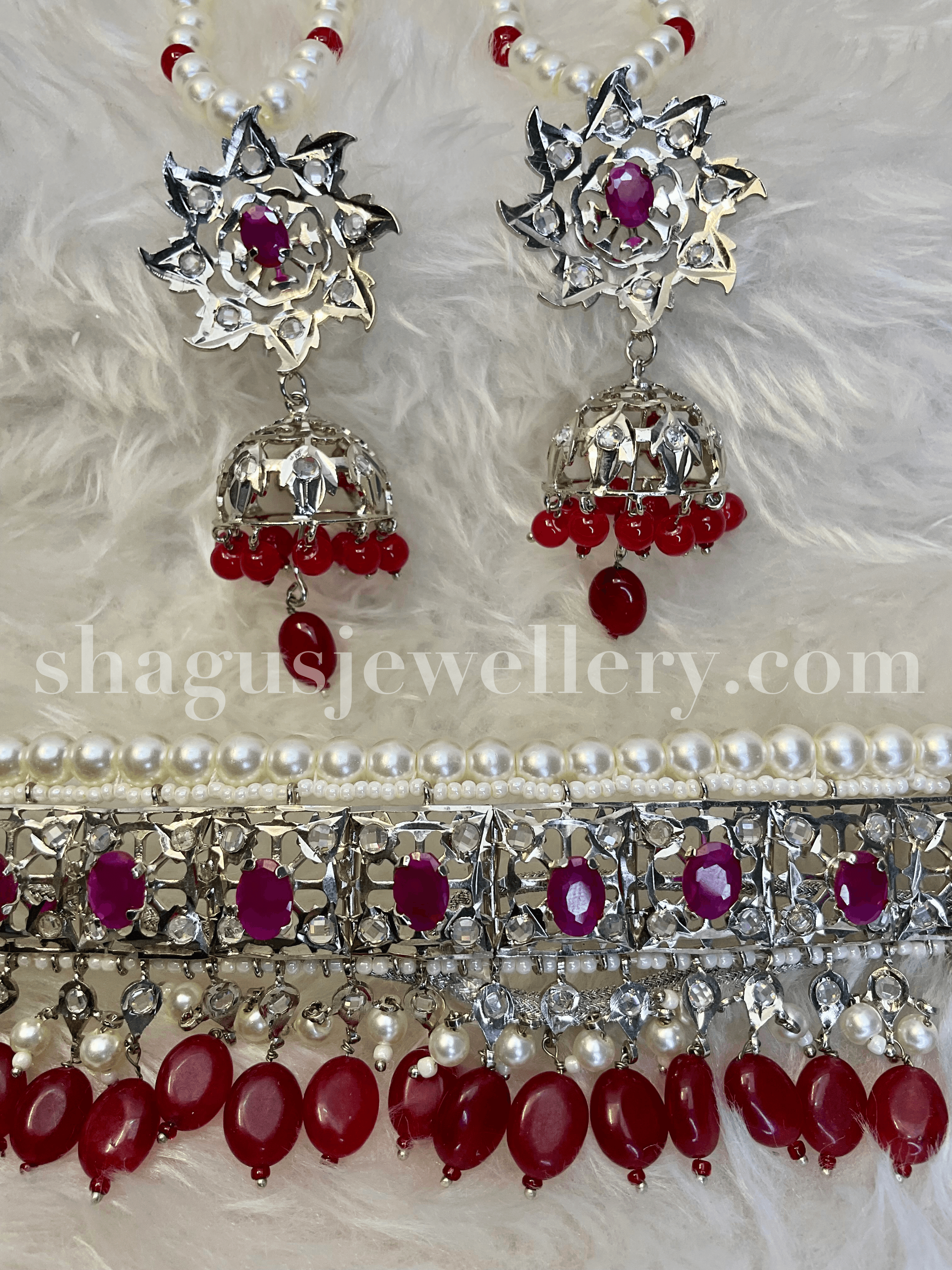 Antique Beauty Silver Dulhan Hyderabadi Set – Ruby (Red) [Click inside image for HD quality]