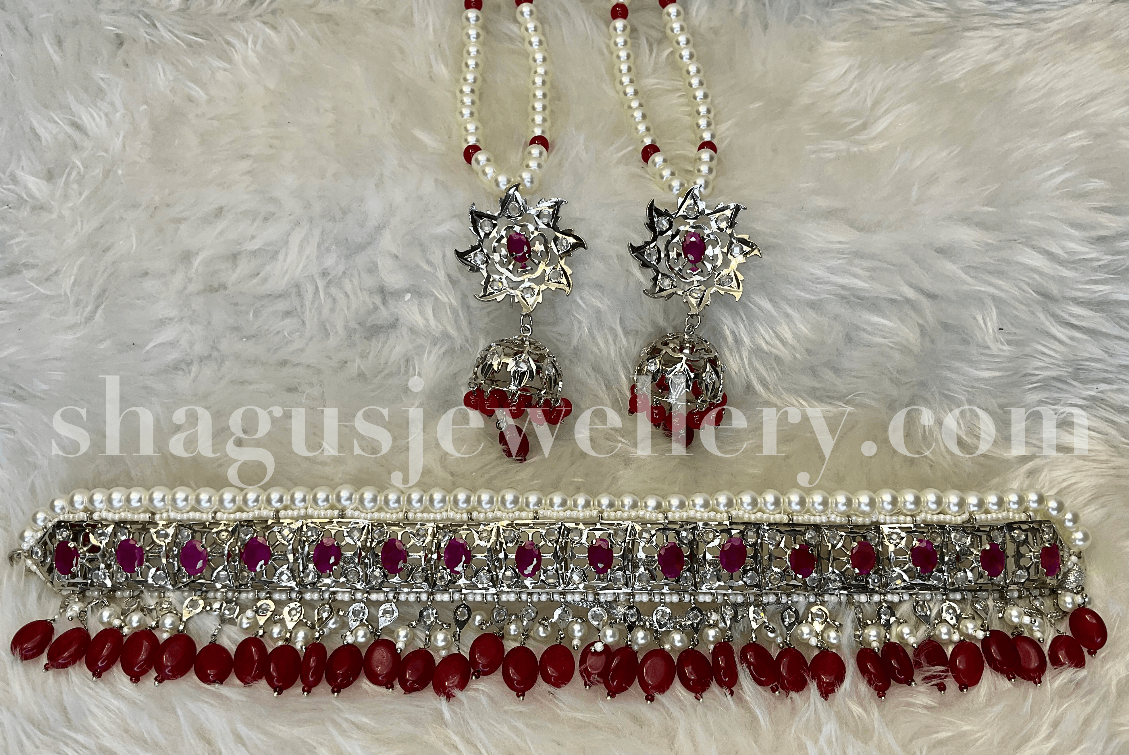 Breathtaking Silver Dulhan Jadavi Set – Ruby (Red) [Click inside image for HD quality]