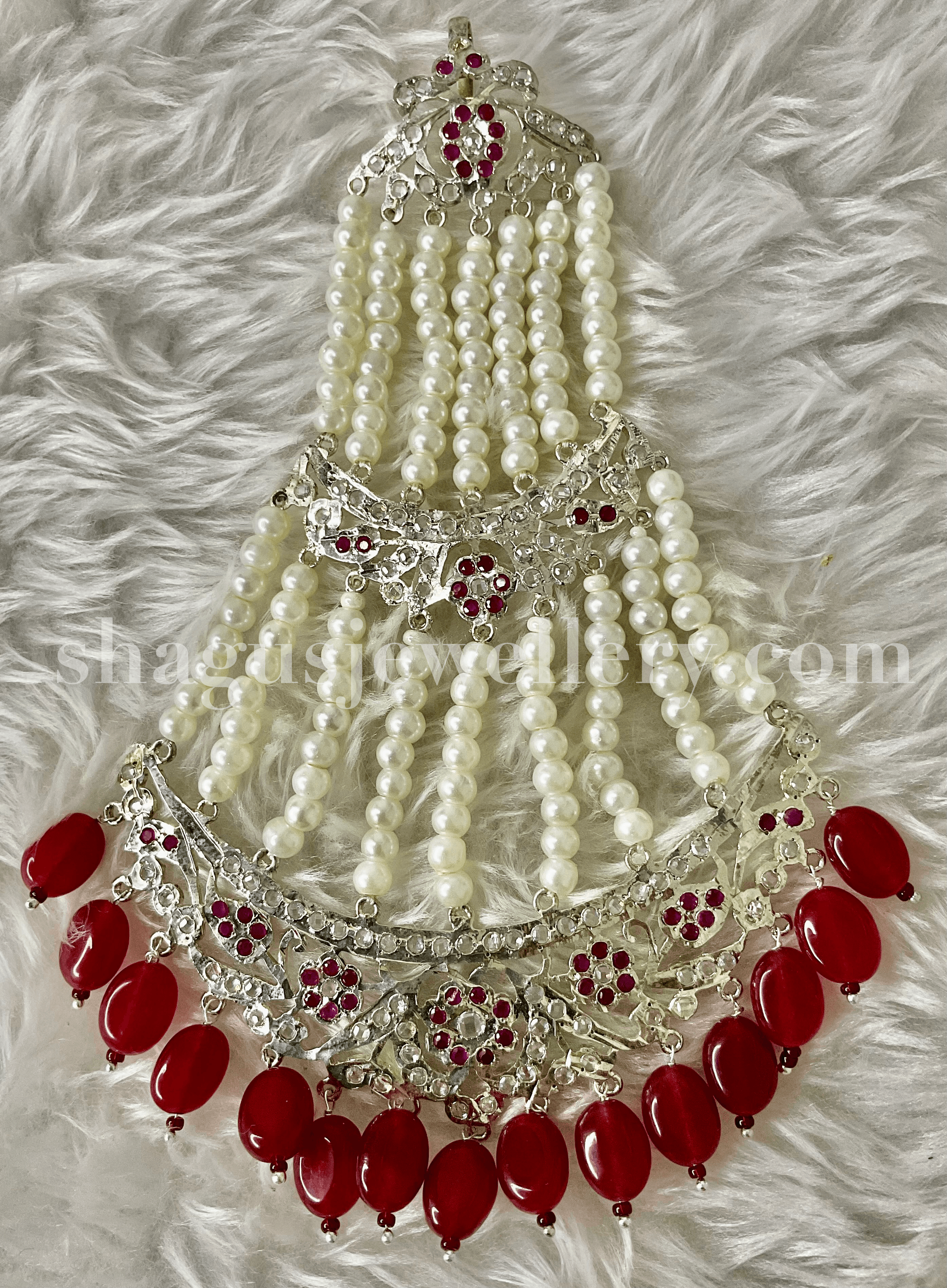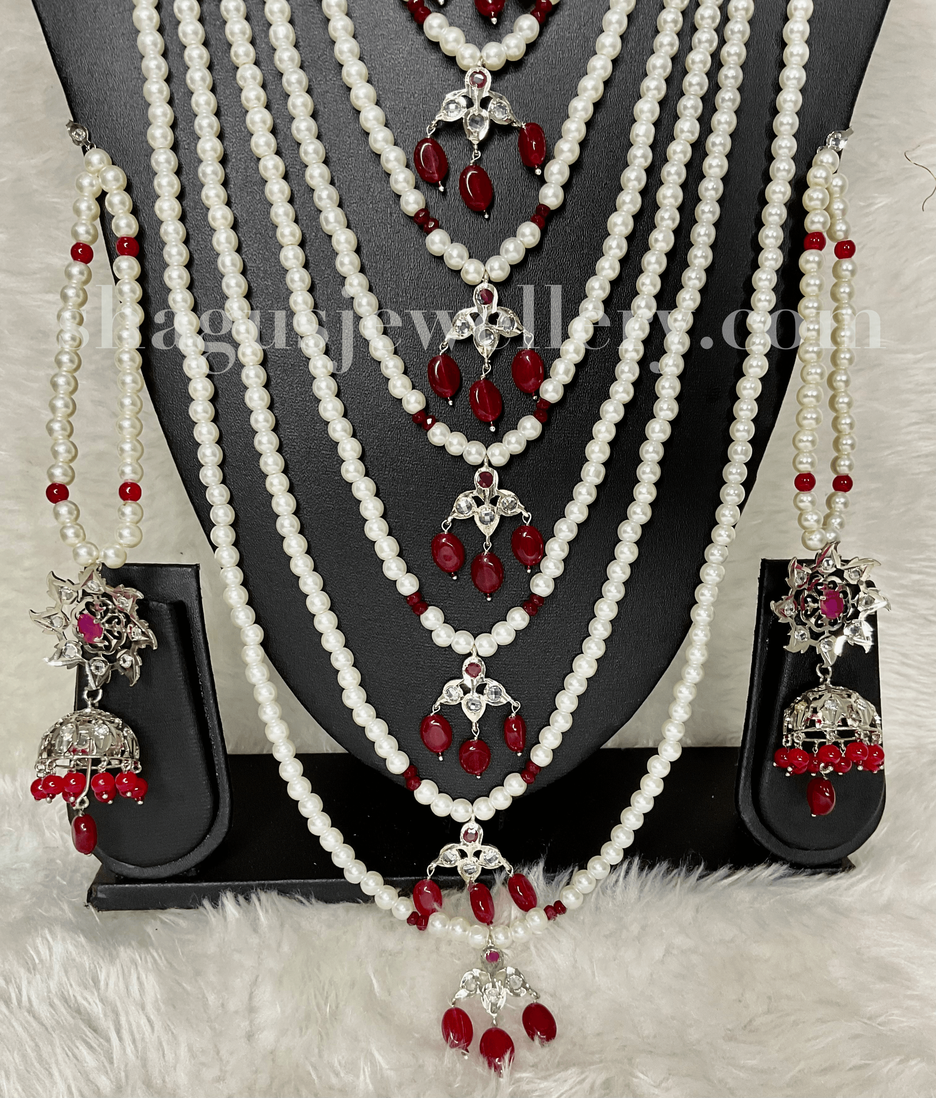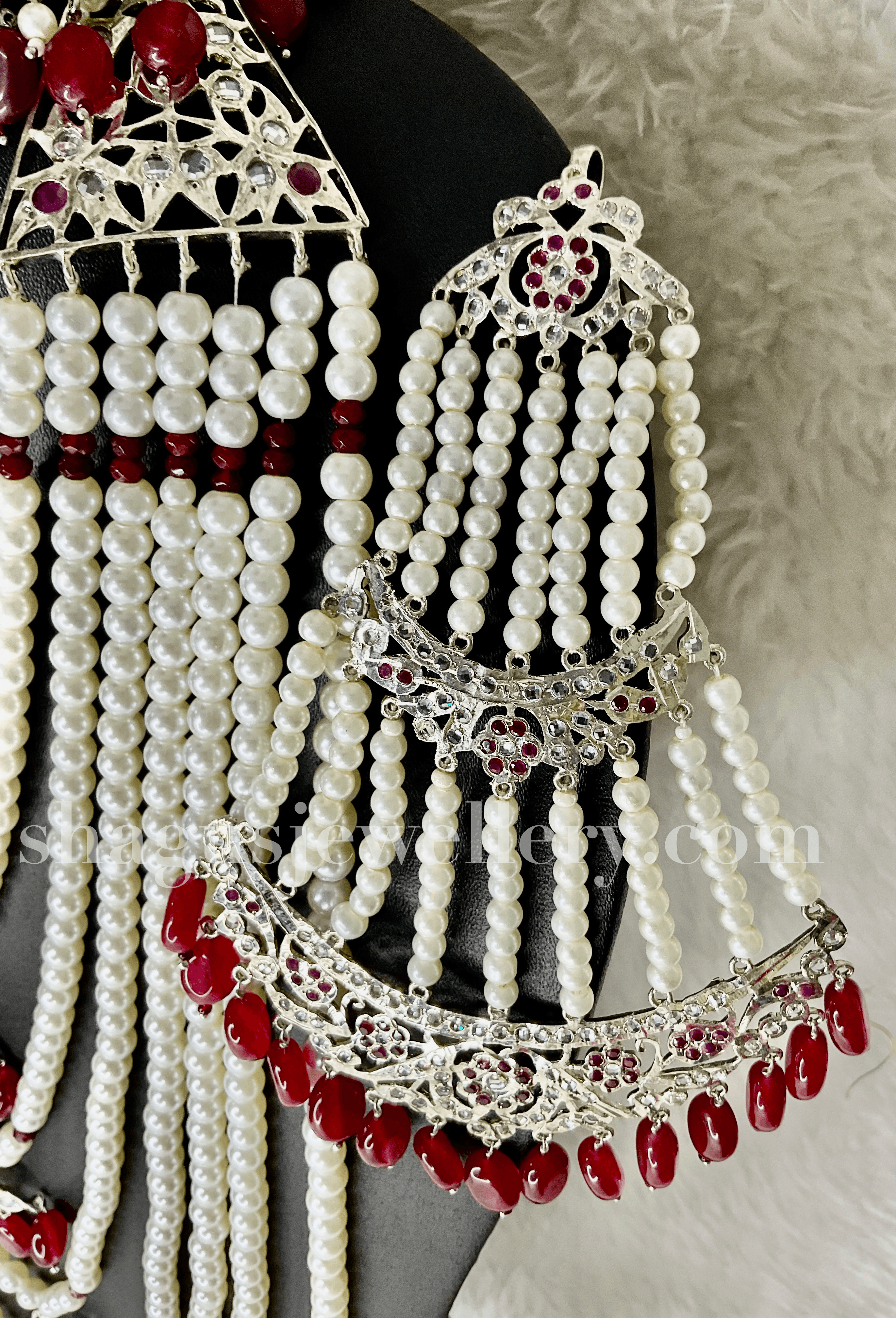 A+ Charismatic Silver Satlada Dulhan Set – Ruby (Red) [Click inside image for HD quality]